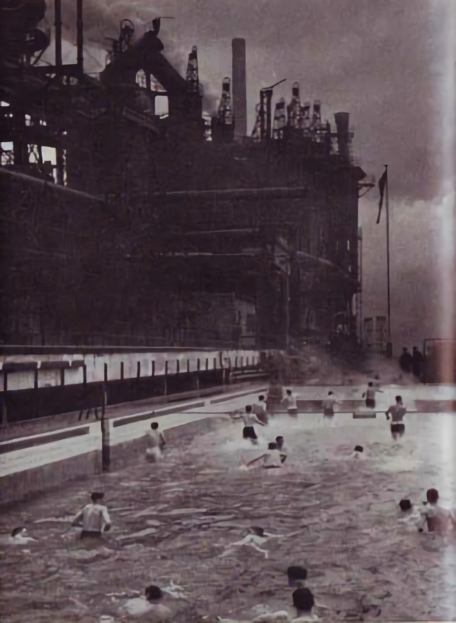 To co vidíte na obrázku je bazén přímo na pozemku továrny. Mohl bych k tomu dodat snad jen Hedinův citát: